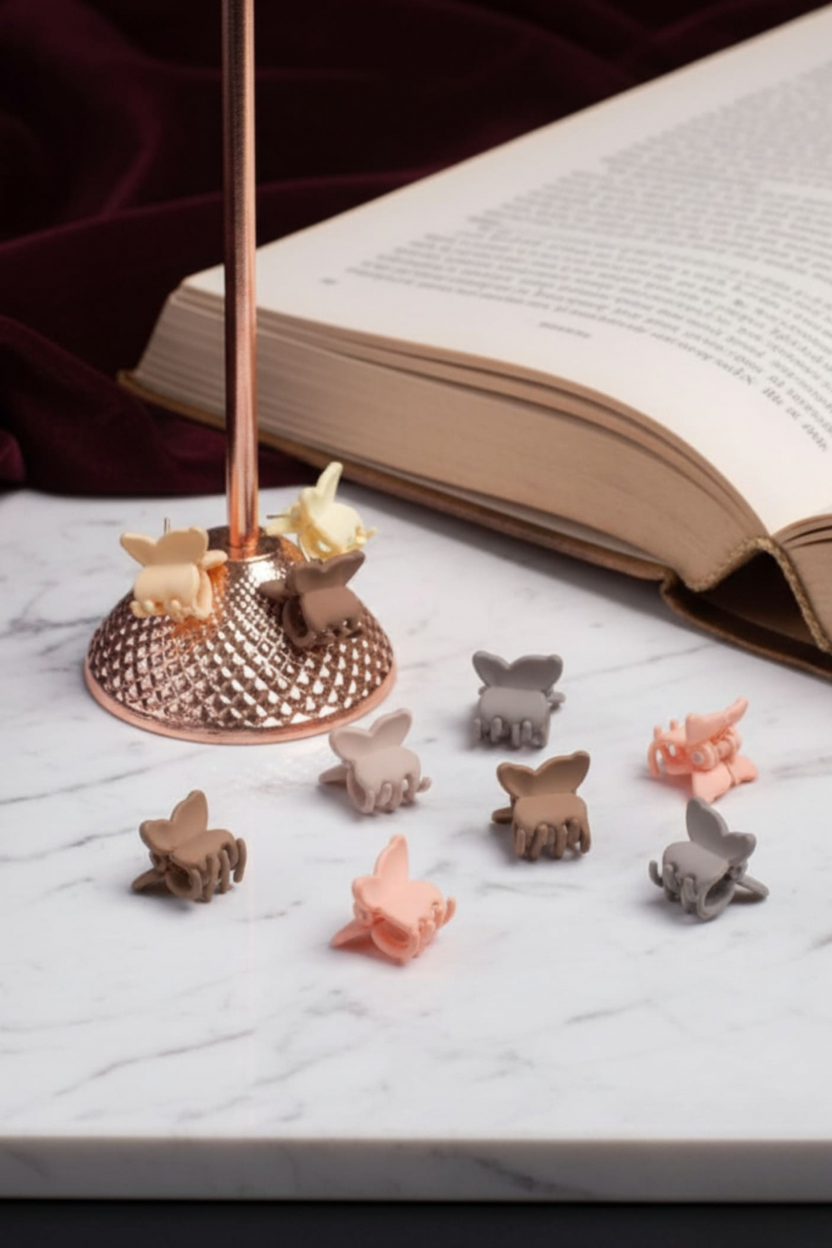 Set de pinzas pequeñas con diseño de mariposa, ideales para sujetar con suavidad pequeños mechones, trenzas o crear peinados delicados y femeninos. Su forma ergonómica permite una sujeción firme sin maltratar el cabello. Cada set incluye variedad de tonos neutros y pastel, perfectos para combinar con tu mood o tu outfit del día.