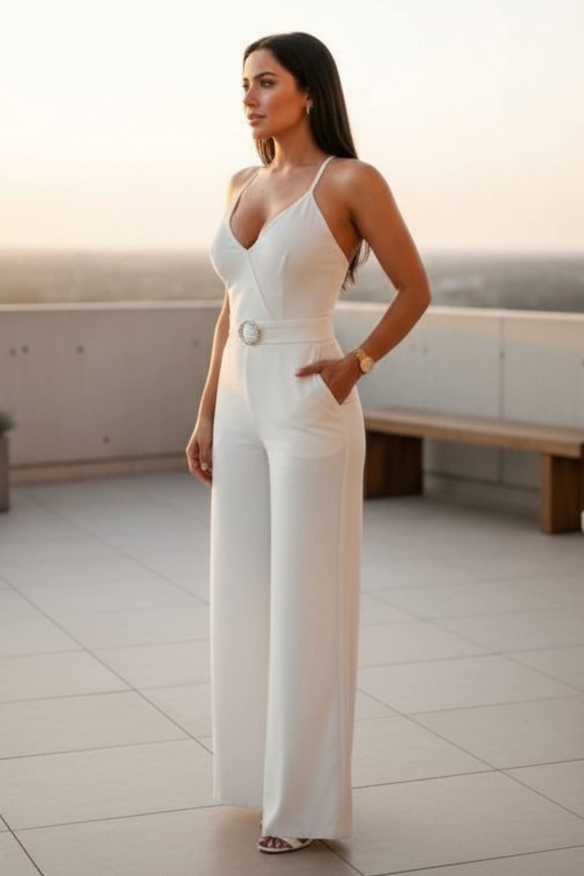 Este enterizo es puro equilibrio entre elegancia y sensualidad. Su escote en V alarga visualmente el torso, mientras que las cargaderas cruzadas y la espalda fruncida se adaptan al cuerpo con comodidad. El cinturón decorativo marca la silueta y la pierna ancha aporta movimiento y sofisticación. Perfecto para eventos, cenas especiales o simplemente cuando querés vestir con intención. Una prenda que habla claro, sin necesidad de subir la voz.