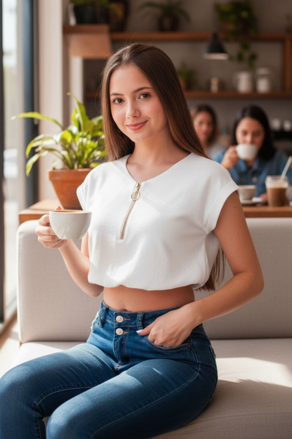 Blusa de niña sin mangas con cremallera decorativa y corte crop top. Su diseño moderno y juvenil es ideal para un look fresco y versátil. Disponible en varios colores, es perfecta para combinar con jeans o faldas y darle un toque divertido y cómodo a cualquier ocasión.